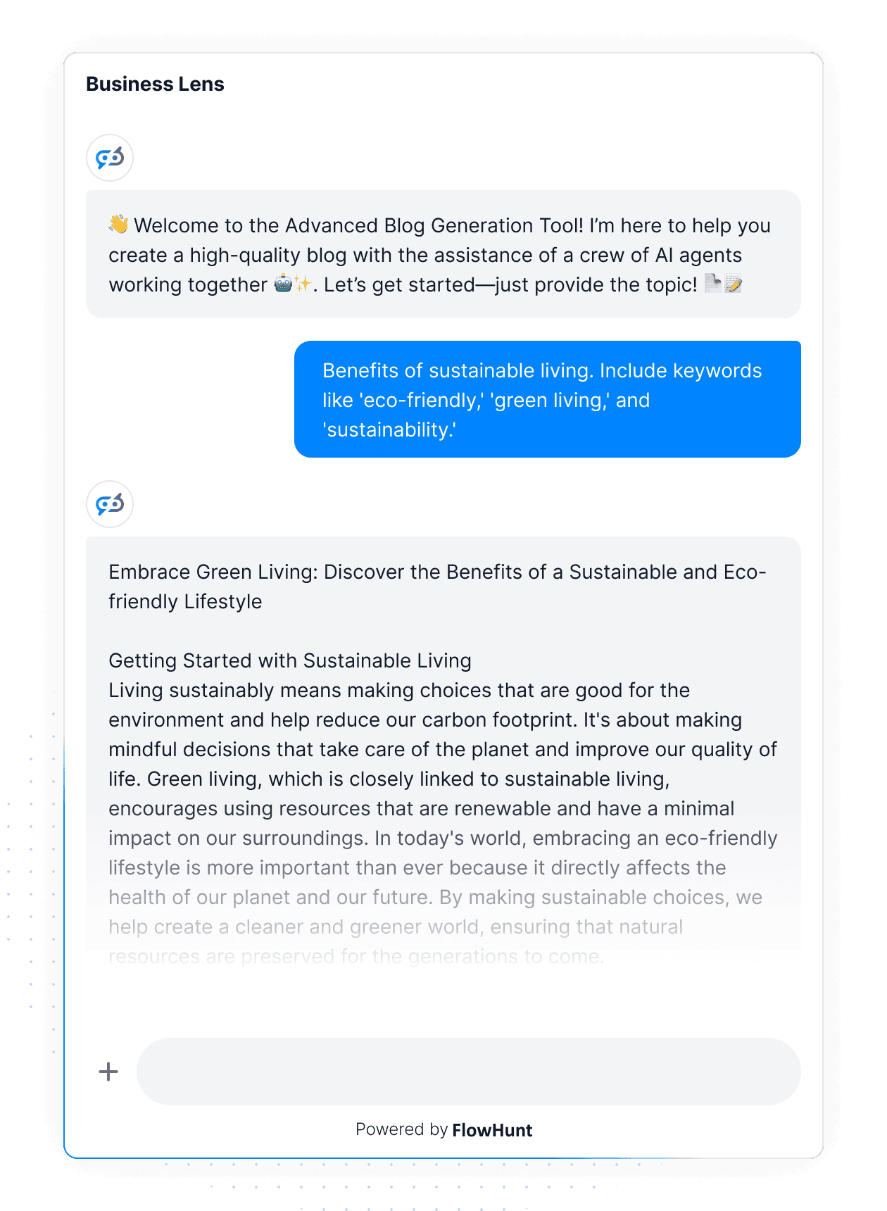 FlowHunt vám dáva nástroje na tvorbu presného a relevantného obsahu, ktorý rezonuje s cieľovou skupinou. Či už ide o krátky príspevok na sociálne siete alebo rozsiahly blog, všetko je len na jedno promptnutie.