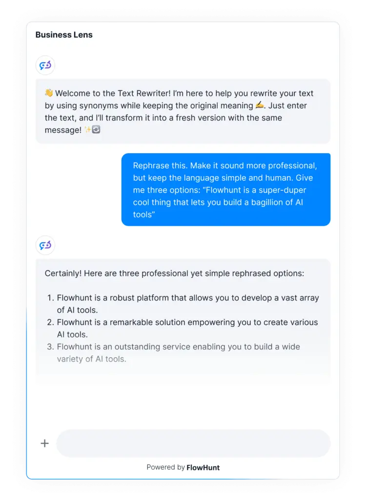Vymýšľajte, tvorte, editujte. FlowHunt podporuje každý krok tvorby obsahu. Či už píšete dôležitý firemný e-mail, príspevok na sociálne siete alebo len hľadáte nápady od AI kolegu, nájdete tu nástroj na všetko.